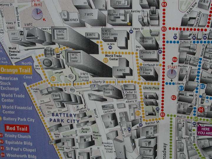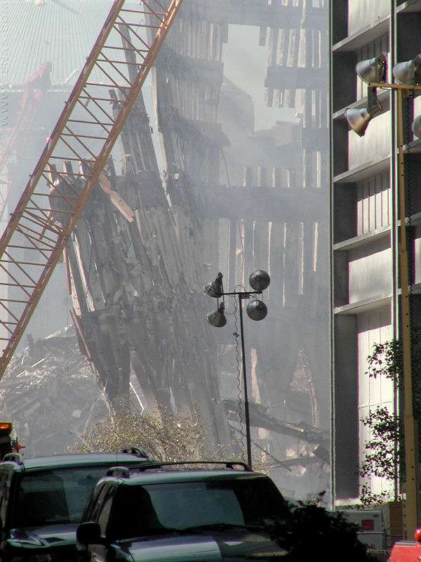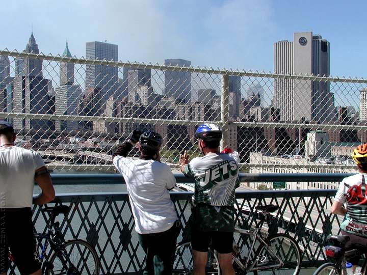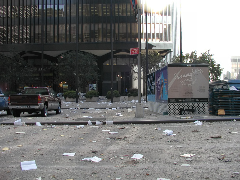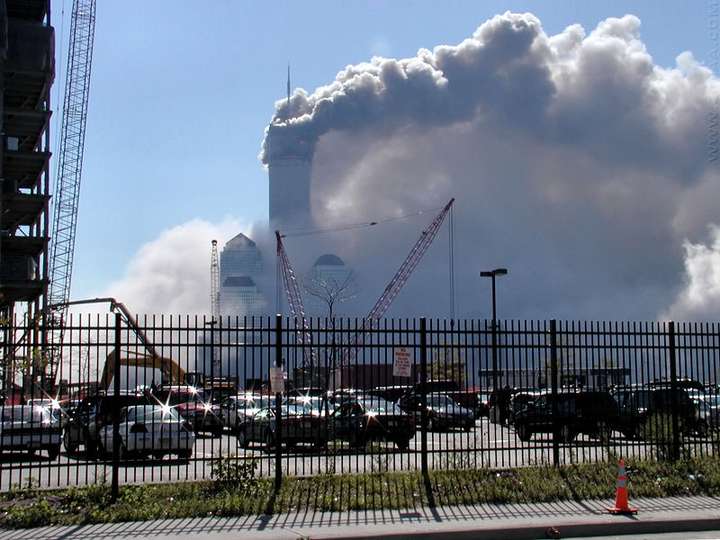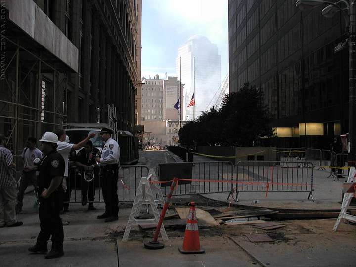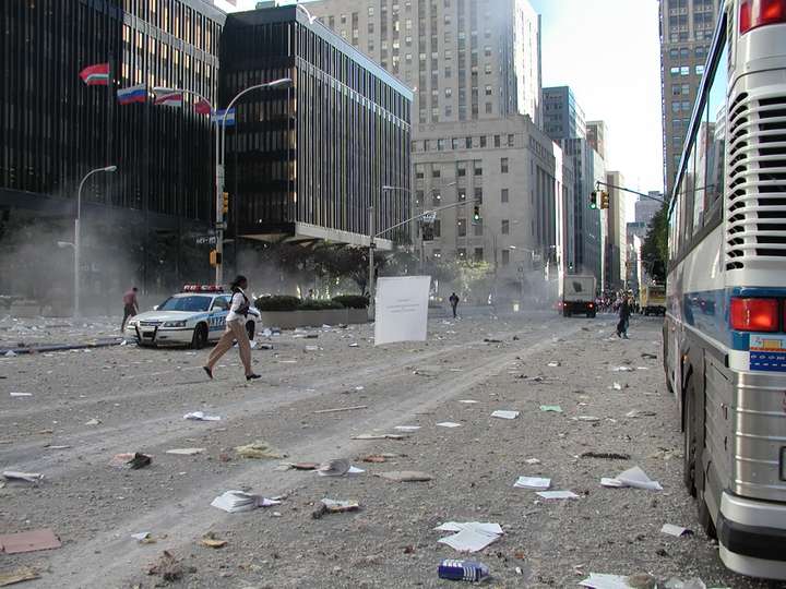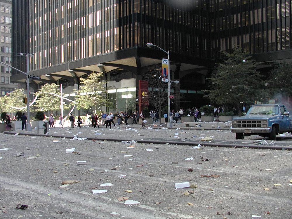 September 10, 2001 / 4.10PM. World Trade Center from Greenpoint, BrooklynSeptember 11, 2001 / 8.48AM. Just after the first airliner crashed into the North Tower, office papers and dust coming downSeptember 11, 2001 / 8.49AM. Top of the North Tower, paper and dust floating around in the skySeptember 11, 2001 / 8.50AM. Church Street in front of 4WTCSeptember 11, 2001 / 8.50AM. Church Street in front of 4WTCSeptember 11, 2001 / 8.51AM. Twin towers seen from Church StreetSeptember 11, 2001 / 8.51AM. Liberty Street in front of 5WTCSeptember 11, 2001 / 8.55AM. Flaming holes in the North TowerSeptember 11, 2001 / 8.57AM. Trapped people in the North TowerSeptember 11, 2001 / 9.04AM. Just after the second airliner hit the South TowerSeptember 11, 2001 / 9.09AM. Both towers on fireSeptember 11, 2001 / 9.10AM. Damage at the east side of the South TowerSeptember 11, 2001 / 9.19AM. View from Washington StreetSeptember 11, 2001 / 9.25AM. Both towers seen from West StreetSeptember 11, 2001 / 9.33AM. At the right the South Tower, the second plane hit this sideSeptember 11, 2001 / 9.40AM. View from North Cove MarinaSeptember 11, 2001 / 9.47AM. View from the ferry to Jersey CitySeptember 11, 2001 / 9.53AM. View from Jersey City waterfrontSeptember 11, 2001 / 9.55AM. A few minutes before the South Tower collapsedSeptember 11, 2001 / 10.02AM. Just after the South Tower collapsedSeptember 11, 2001 / 10.06AM. View from Jersey City, across the Hudson riverSeptember 11, 2001 / 10.53AM.September 11, 2001 / 11.09AM.September 11, 2001 / 12.09PM. Smoke covers lower ManhattanSeptember 11, 2001 / 3.57PM. Remains of the North Tower behind the Winter GardenSeptember 14, 2001 / 6.42PM. Convoy from Ground Zero, poster of missing personSeptember 14, 2001 / 4.24PM. Changed skyline, Ground Zero is on the leftSeptember 14, 2001 / 7.50PM. President Bush passes by after a visit to Ground ZeroSeptember 15, 2001 / 11.48AM. View from the Empire State Building towards Ground ZeroSeptember 15, 2001 / 1.36PM. View from the Empire State BuildingSeptember 16, 2001 / 1.18PM. View from Manhattan Bridge towards Ground ZeroSeptember 16, 2001 / 1.23PMSeptember 16, 2001 / 1.26PM. Clouds rise from Ground ZeroSeptember 17, 2001 / 1.15PM. Many police officers on the streetsSeptember 17, 2001 / 2.34PM. Brooklyn Bridge closed for trafficSeptember 17, 2001 / 3.11PM. Remains and debris on Ground ZeroSeptember 17, 2001 / 3.17PMSeptember 17, 2001 / 3.20PMSeptember 17, 2001 / 3.20PMSeptember 17, 2001 / 3.25PM. Walking tour map on Wall StreetSeptember 17, 2001 / 3.28PM. Policeman guards Federal Hall Memorial Hall on Wall StreetSeptember 17, 2001 / 3.31PM. The Wall Street area was still dusty and smellyOctober 13, 2002 / 1.18PM. The spot I was, when the second airliner hit the South Tower